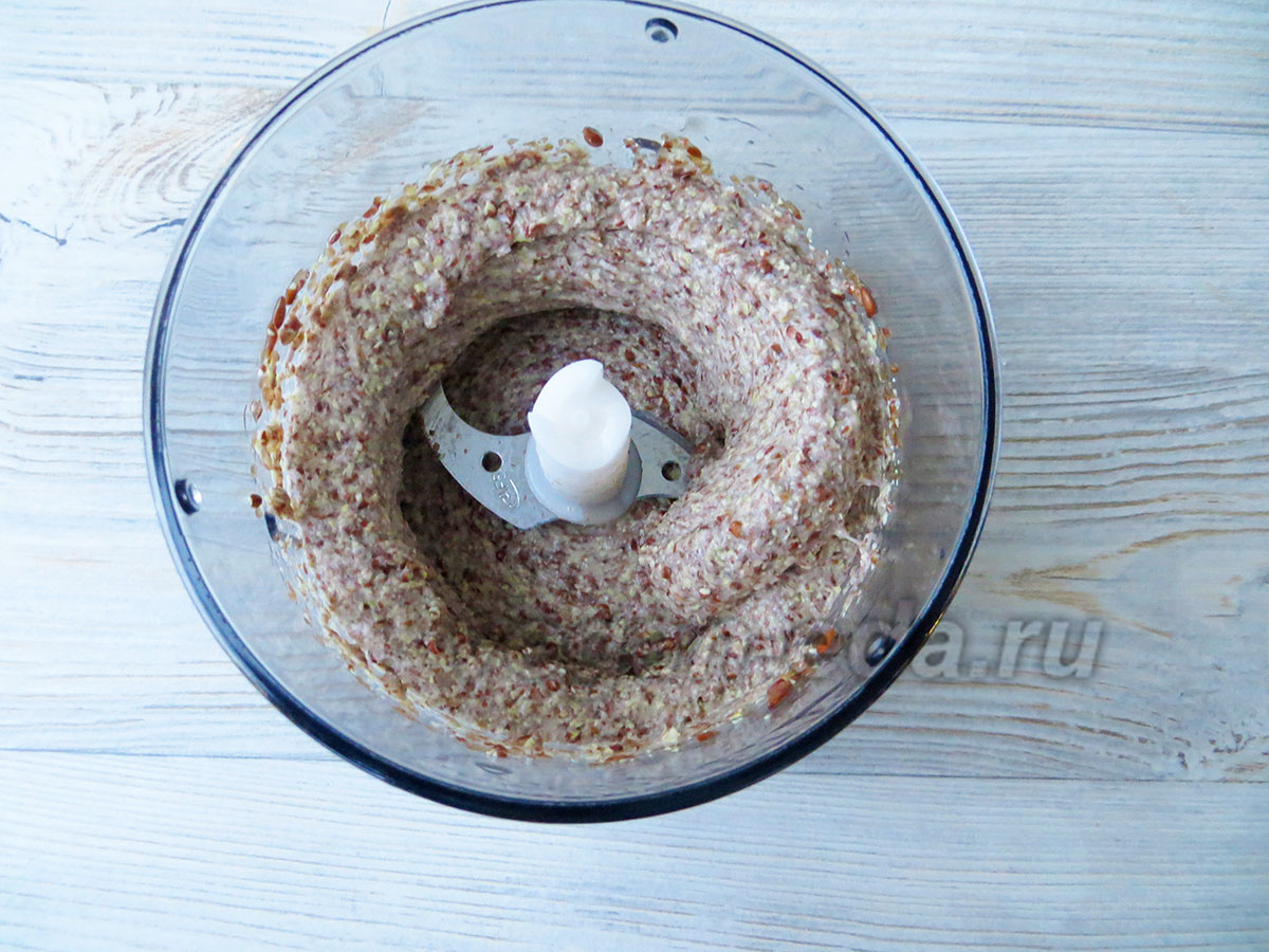 - Проросший лён измельчите в небольшом блендере до однородной, слегка тягучей массы.