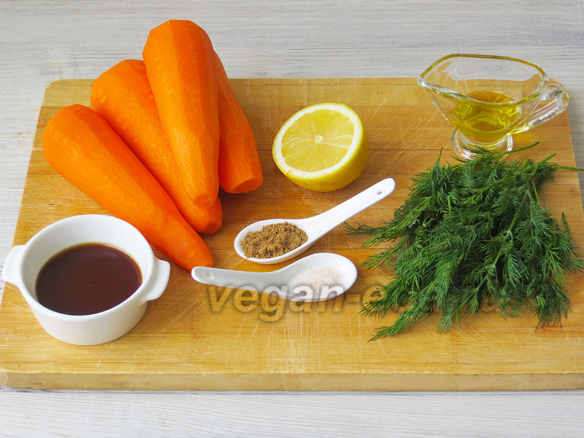 - Подготовьте ингредиенты. Морковь вымойте и очистите.