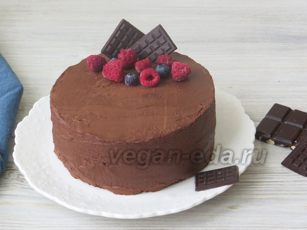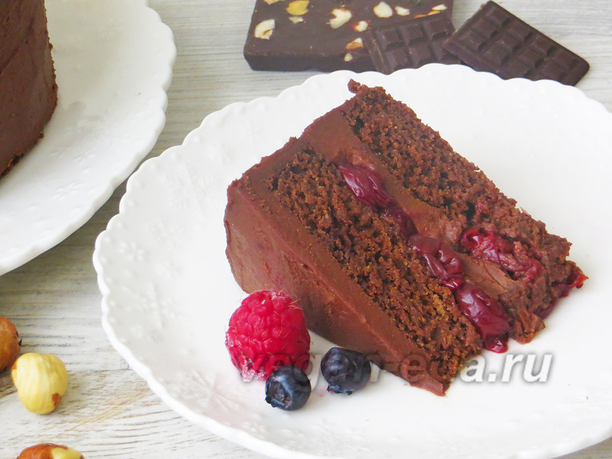 Украсьте по желанию: кремом с помощью кондитерского мешка с насадкой или свежими/замороженными ягодами. - Готовый шоколадный торт с вишней уберите в холодильник минимум на 2 часа для стабилизации.