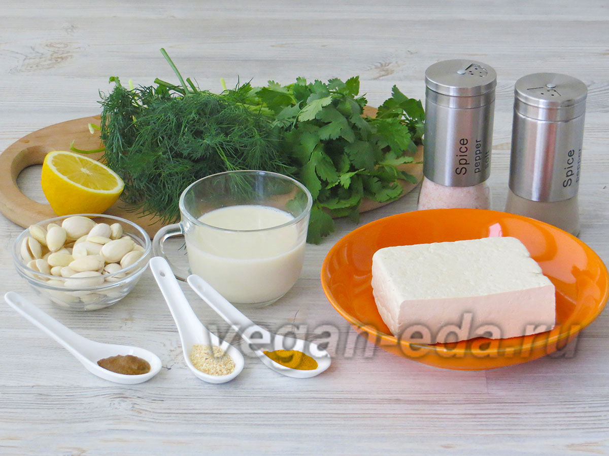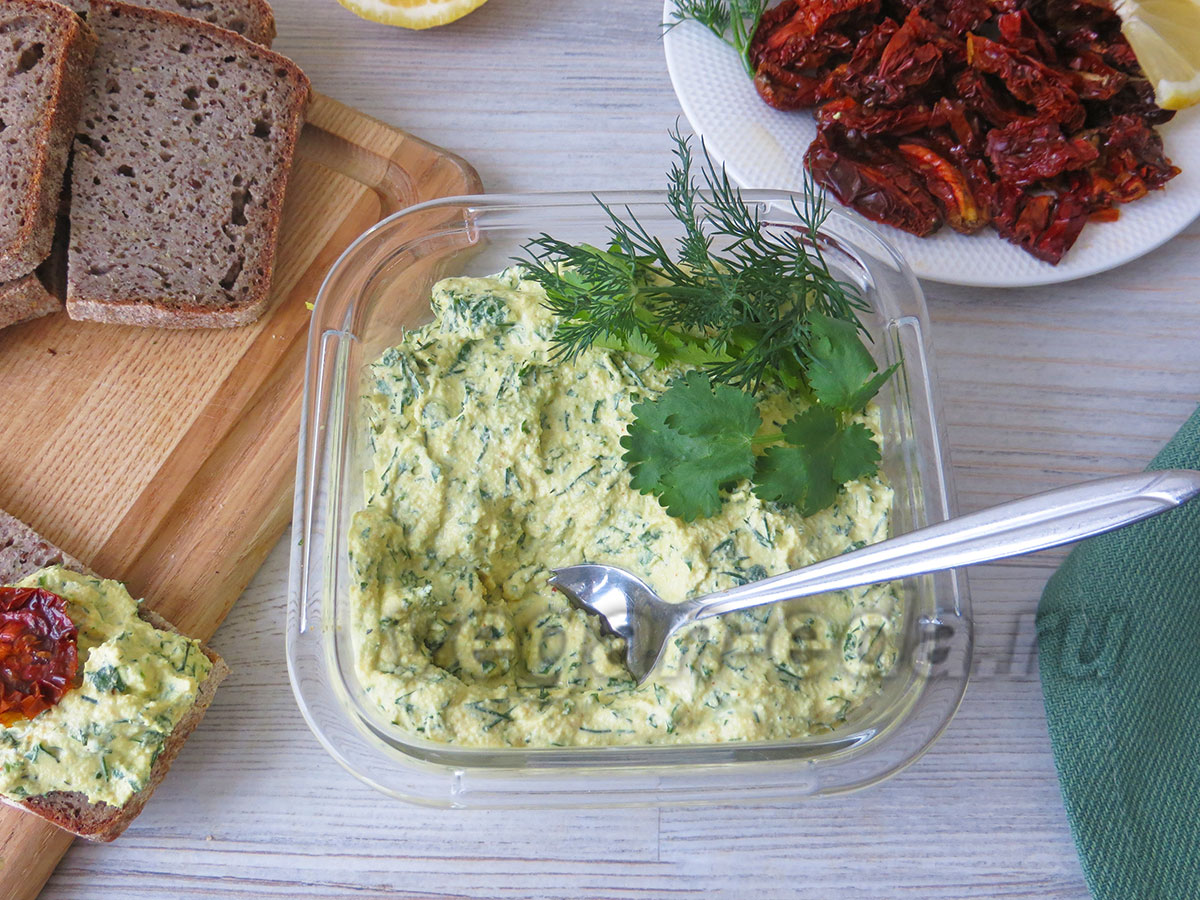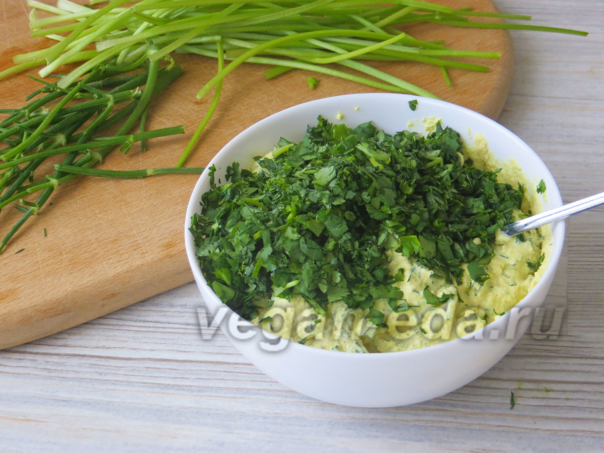 Рецепт сливочного сыра из тофу и миндаля с зеленью