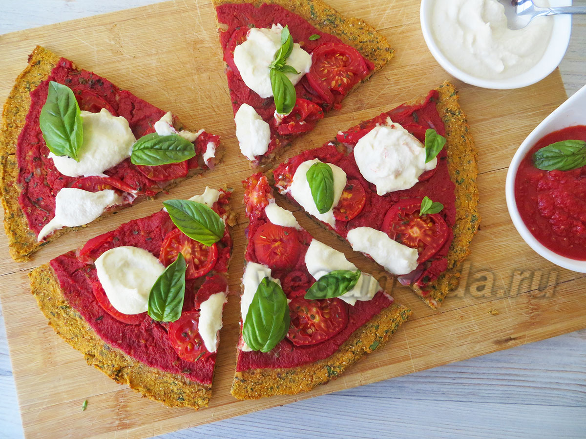 Польза веганской пиццы Маргарита с коржом из батата и нутовой муки