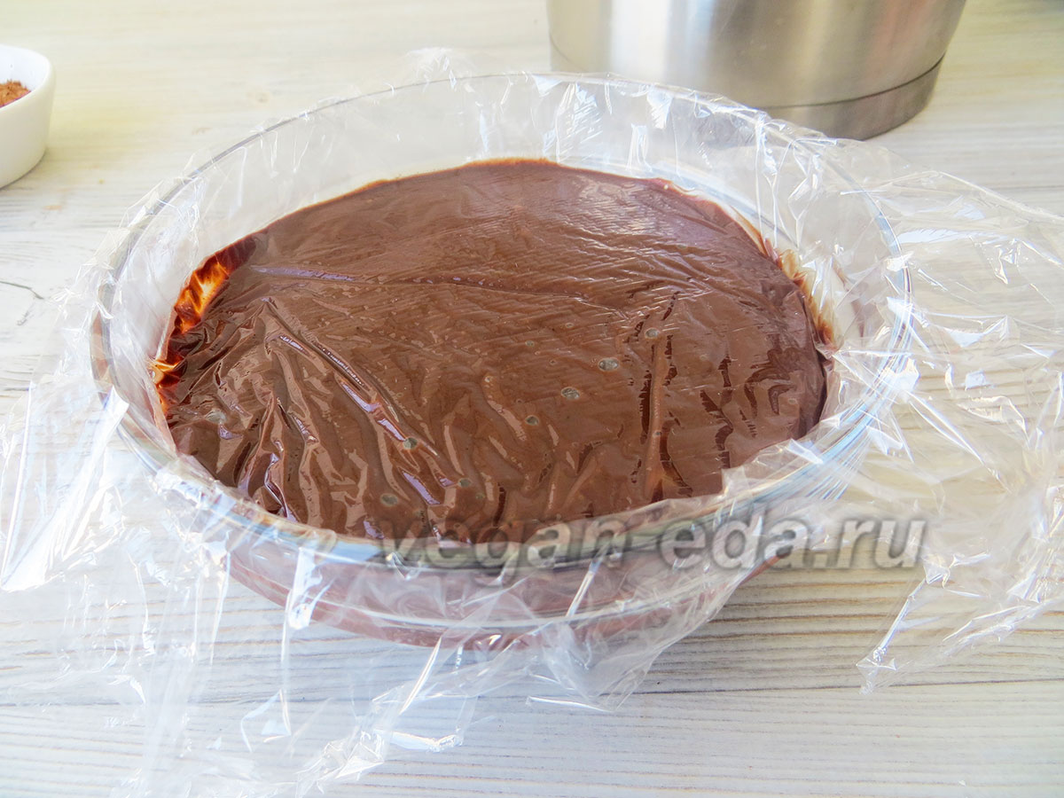 Затем пробейте погружным блендером до густой, кремовой и однородной текстуры. - Переложите массу в миску, накройте пищевой плёнкой «в контакт», чтобы не образовалась корочка, и уберите в холодильник примерно на 8 часов или на ночь для стабилизации.